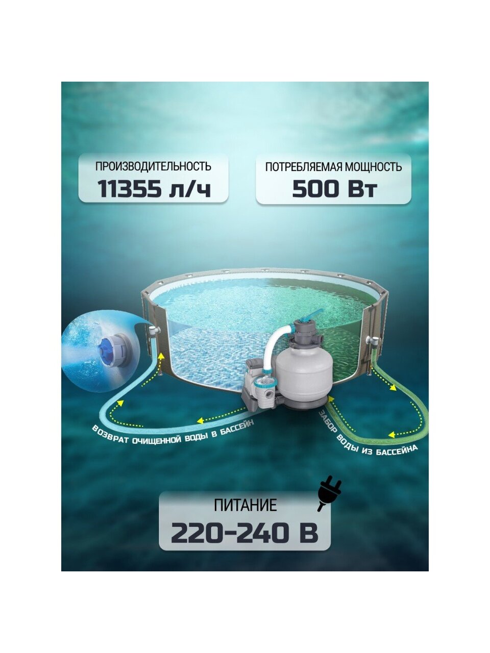 - Высокая производительность: 11355 л/ч для быстрой и эффективной фильтрации воды.