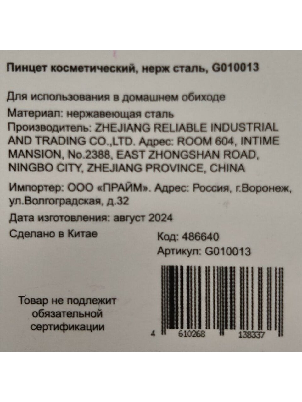 Вы можете приобрести «Пинцет косметический, нержавеющая сталь, G010013» и другие товары в нашем интернет-магазине в Ярославле по низким ценам и с бесплатным самовывозом.