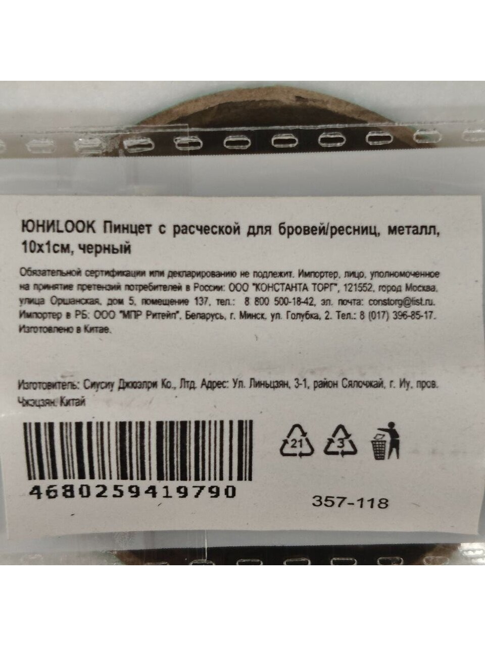 Пинцет для бровей и ресниц Юниlook — идеальный инструмент для точной коррекции и ухода. Металлический корпус обеспечивает прочность и долговечность, а компактный размер 10х1 см делает его удобным для использования дома и в поездках. Встроенная расческа помогает аккуратно уложить волоски, обеспечивая безупречный результат. Черный цвет придает стильный вид аксессуару и подчеркивает его универсальность.