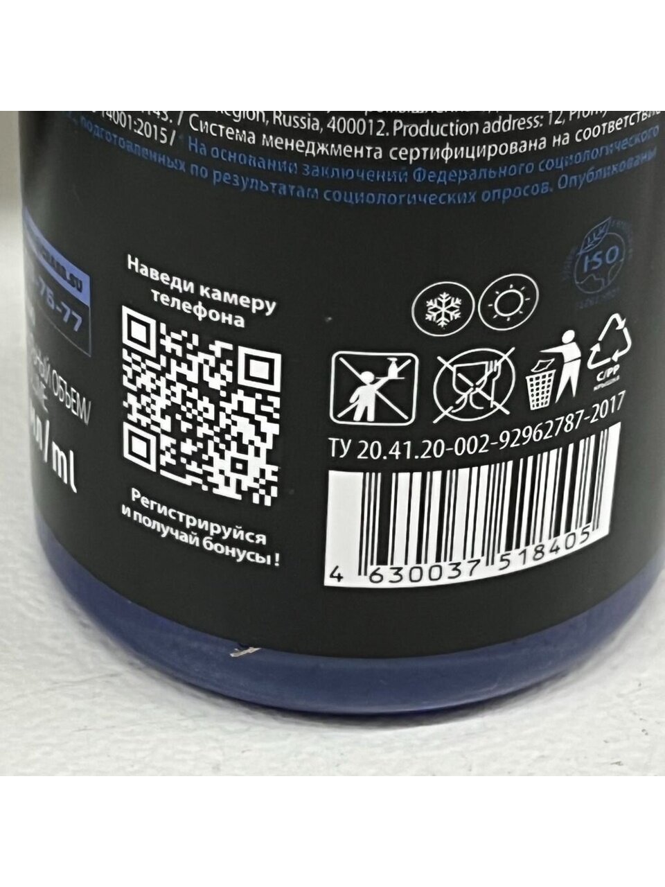 - Состав: ≥30% вода деминерализированная, 15%, но <30% изопропанол, <5% полидиметилсилоксан, краситель.