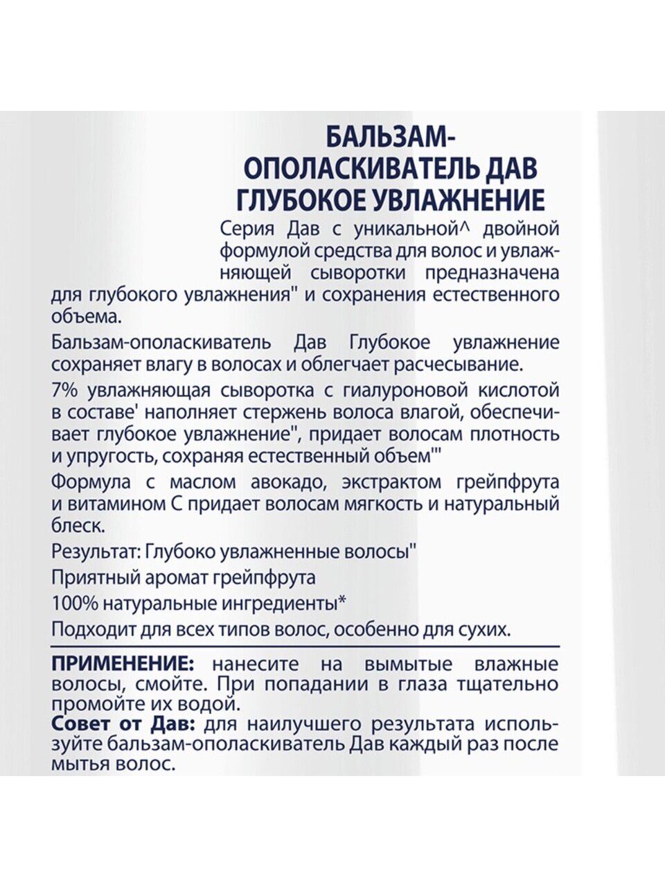 Выбирая бальзам-ополаскиватель Dove "Глубокое увлажнение", появляется возможность обеспечить волосам профессиональный уход прямо у себя дома. Экономия времени и средств, легкость использования и уверенность в результате делают это средство отличным выбором для тех, кто стремится к здоровью и красоте волос. Увлажнение, восстановление и защита — ключевые выгоды, которые доступны с каждым применением.