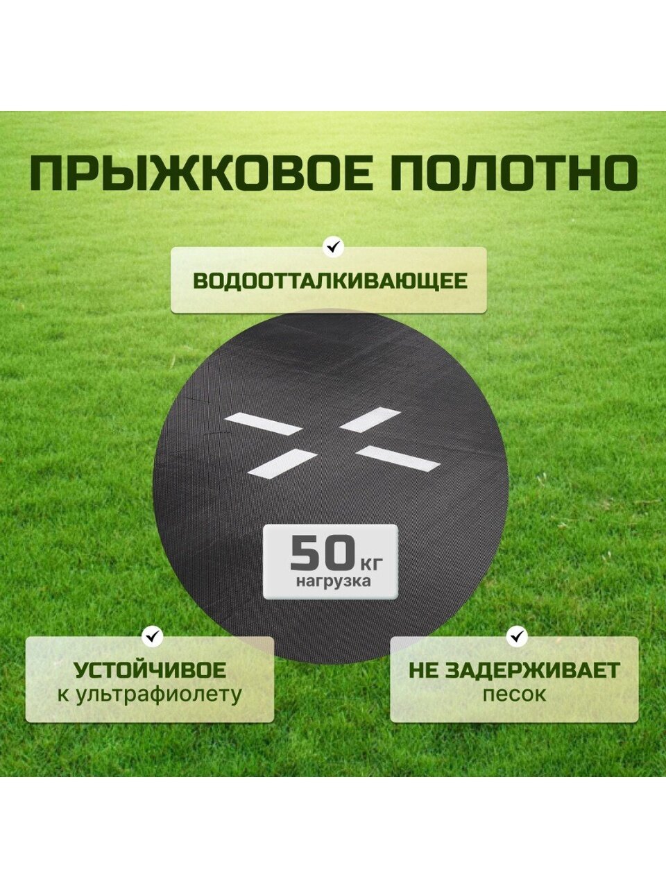 Прыжковое полотно — это основной элемент батута. Материал прыжкового полотна из устойчивой к УФ сетчатой полипропиленовой ткани. Полипропиленовая ткань - многофункциональный материал, изготавливающийся из полипропиленовой нити. Основной особенностью полипропиленовой ткани является высокая устойчивость к истиранию, температурным перепадам, а также воздействию окислителей, щелочей и кислот.