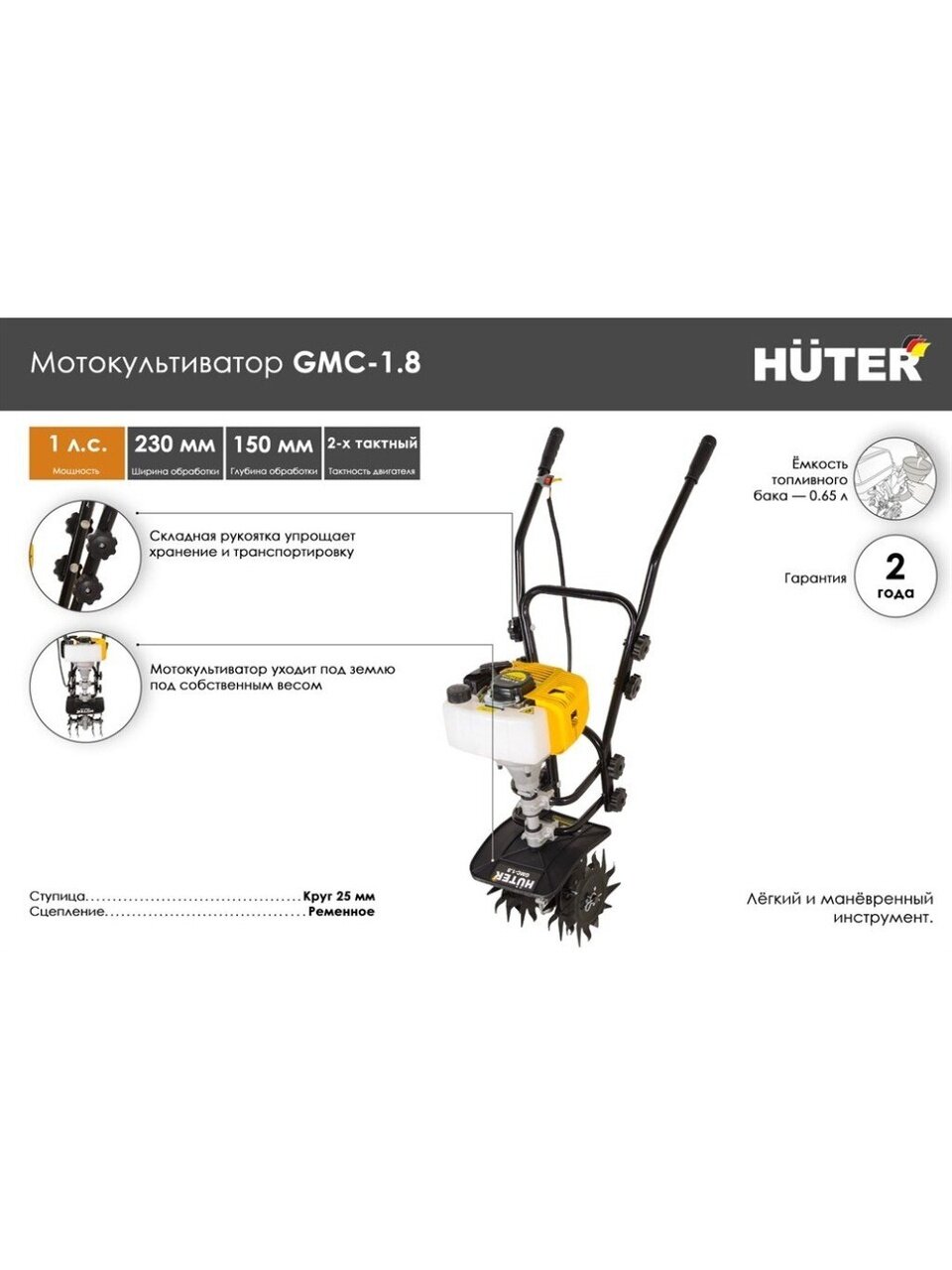 Вы можете приобрести «Бензокультиватор Huter, GMC-1.8, двухтактный, ширина 23 см, глубина 15 см, 1 л.с., скорость 1 вперед, 70/5/3» и другие товары в нашем интернет-магазине в Таганроге по низким ценам и с бесплатным самовывозом.