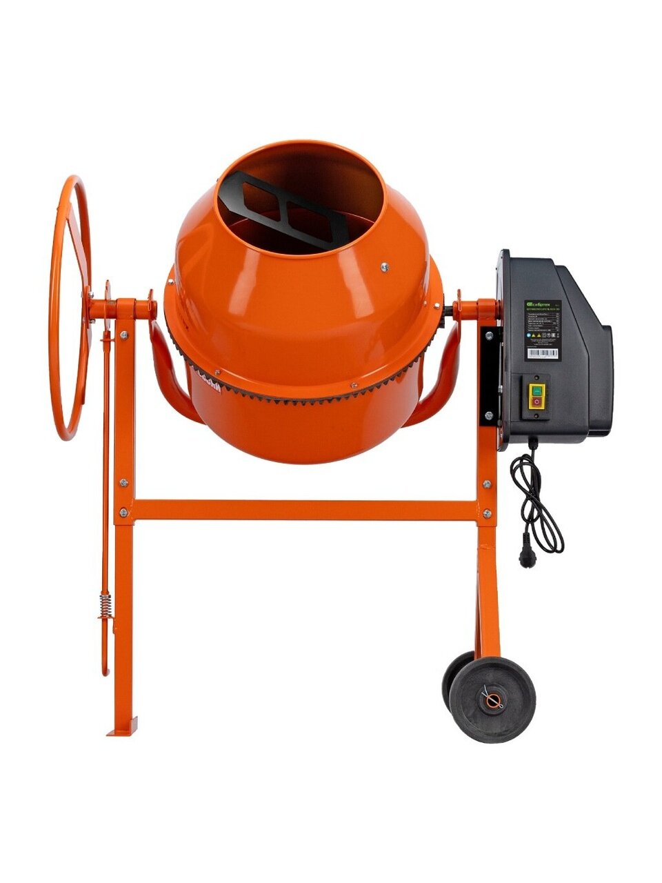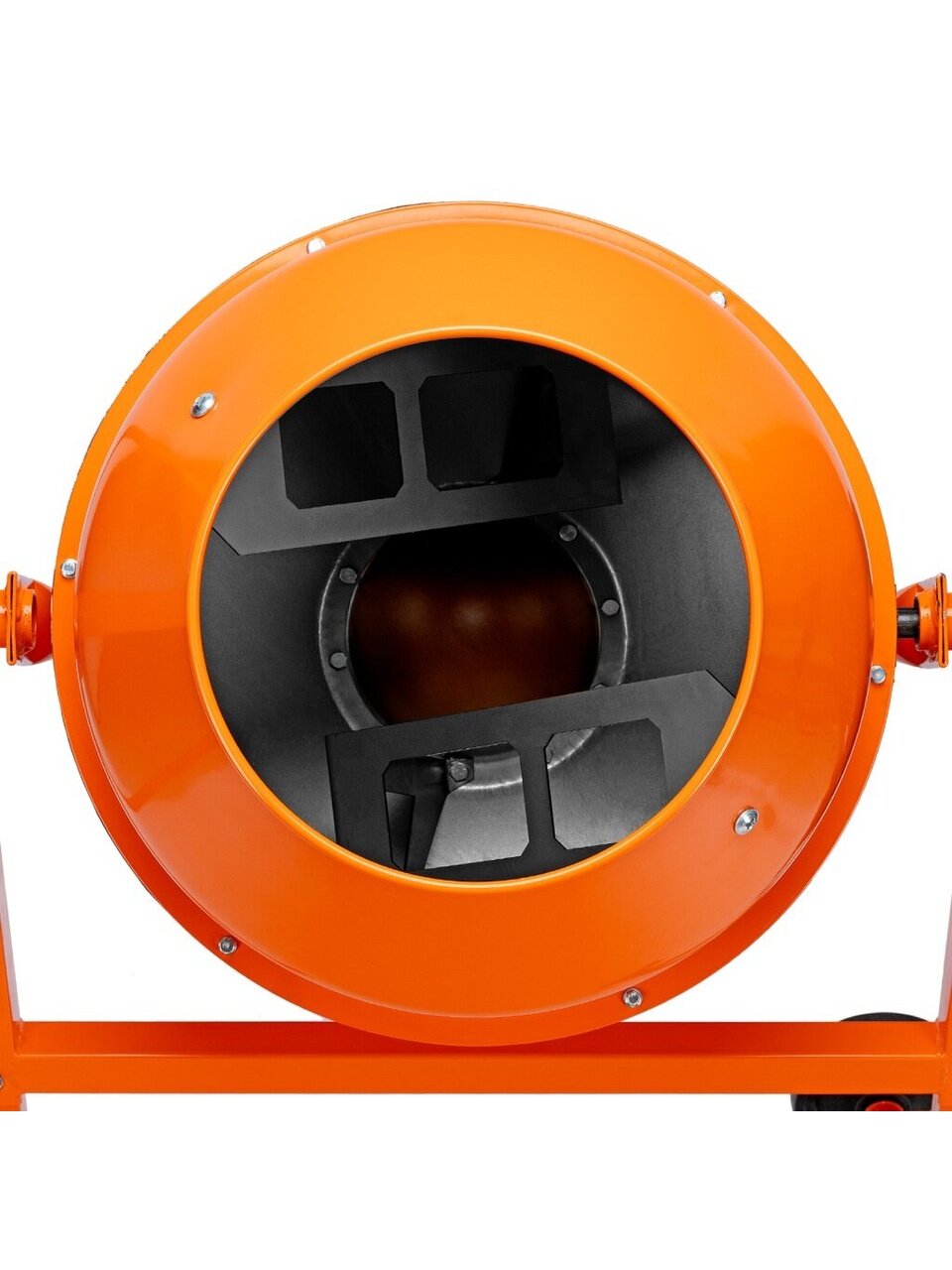 - Простая загрузка и выгрузка смеси: благодаря возможности наклона барабана с помощью маховика и легкой фиксации в нужном положении, процесс работы становится более удобным и эффективным.