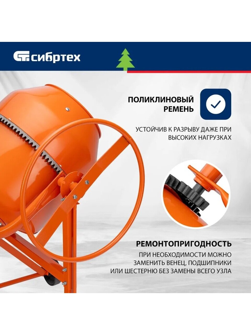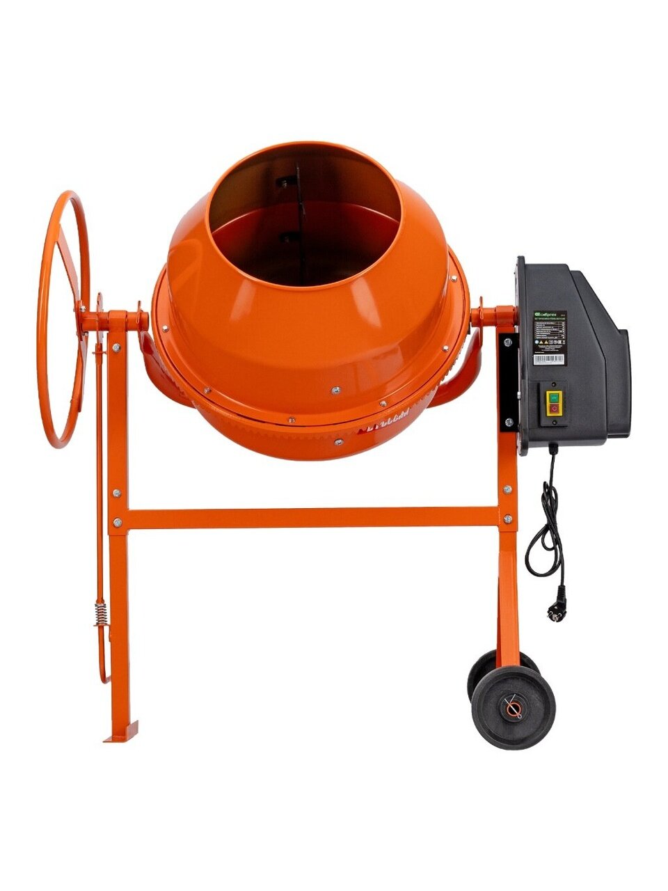 - Простая загрузка и выгрузка смеси: благодаря возможности наклона барабана с помощью маховика и легкой фиксации в нужном положении, процесс работы становится более удобным и эффективным.