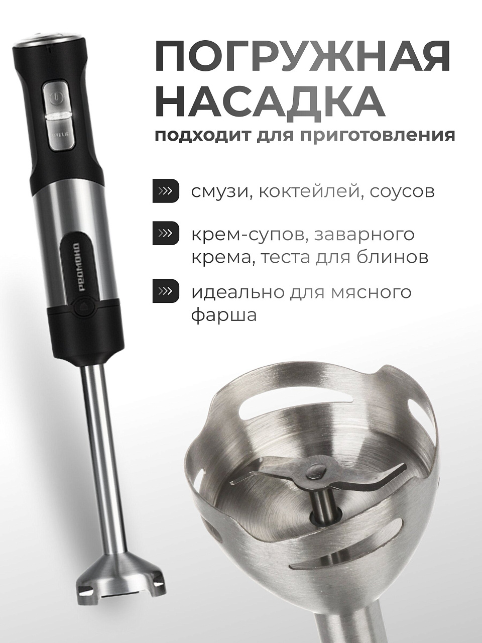 Блендер погружной 1500 Вт Редмонд RHB-2902: максимум мощности для идеальных смузи, супов и теста. Универсальный помощник для кухни по выгодной цене.