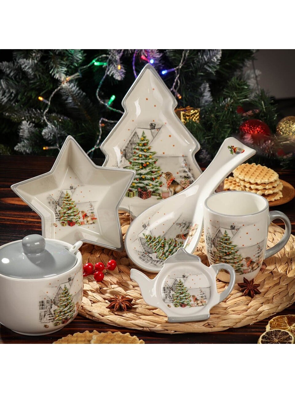 Блюдо из доломита "Сказочная зима" в форме звезды 17.5х16.5 см — стильный акцент для новогоднего стола, идеальный подарок и универсальное решение для сервировки.