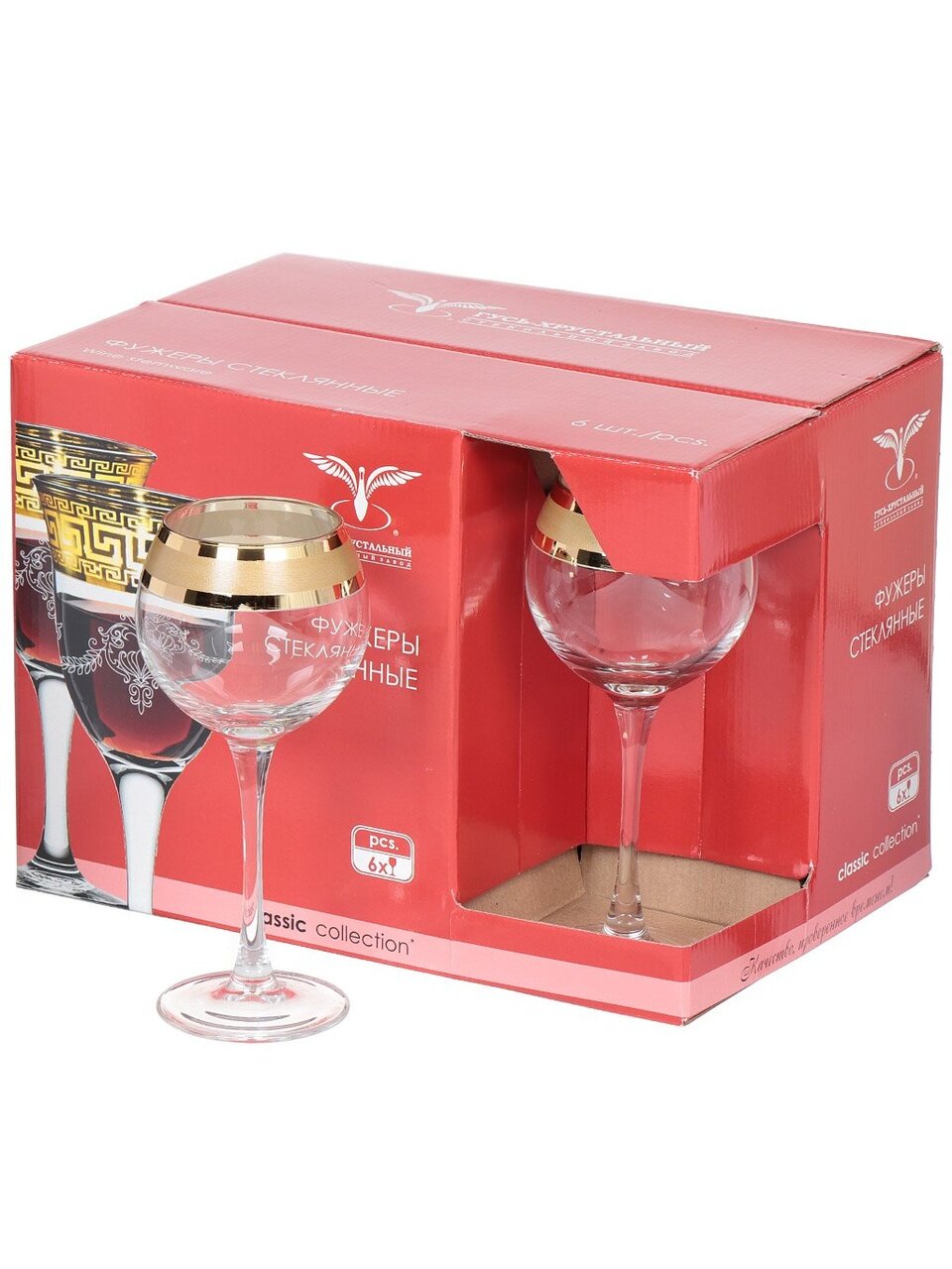 Бокалы для вина 210 мл, 6 шт, с золотым декором — элегантный подарок и идеальный выбор для сервировки стола на праздник или дома. Гусь-Хрустальный, коллекция Ампир.