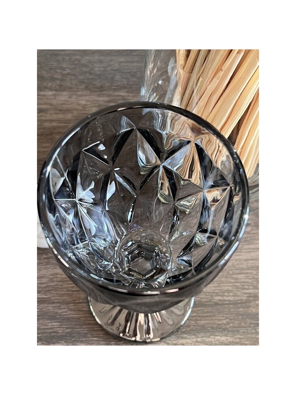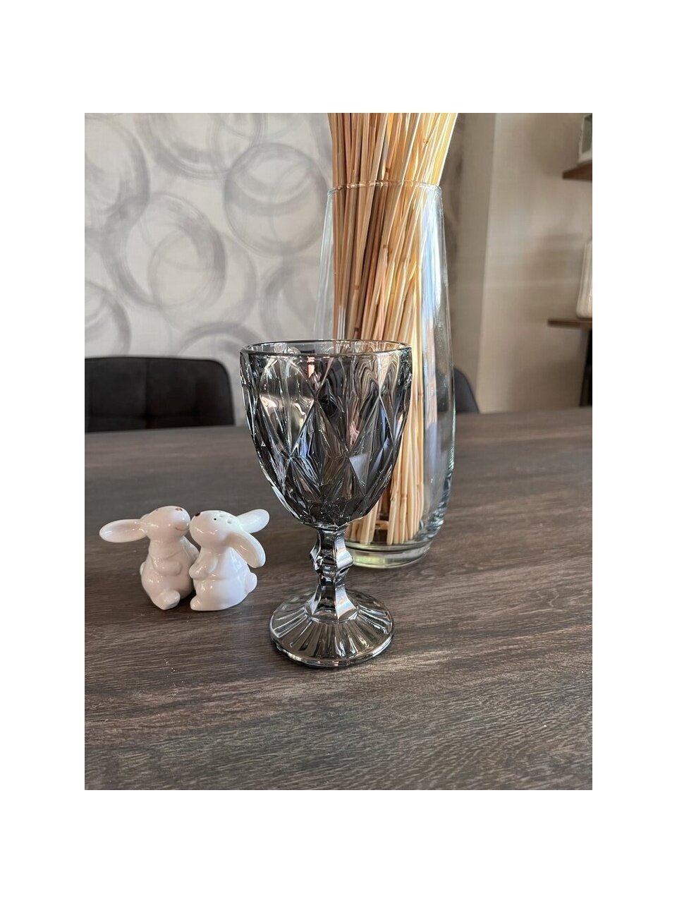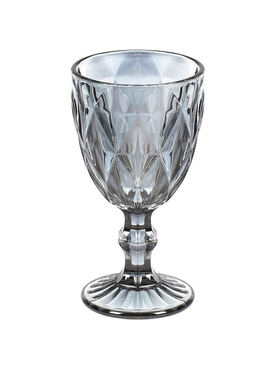 Объём — 300 мл, материал — прессованное рельефное стекло, цвет — графитовый серый, форма — коническая, количество — 1 шт. Бокал интерьерный, подходит для женщин.