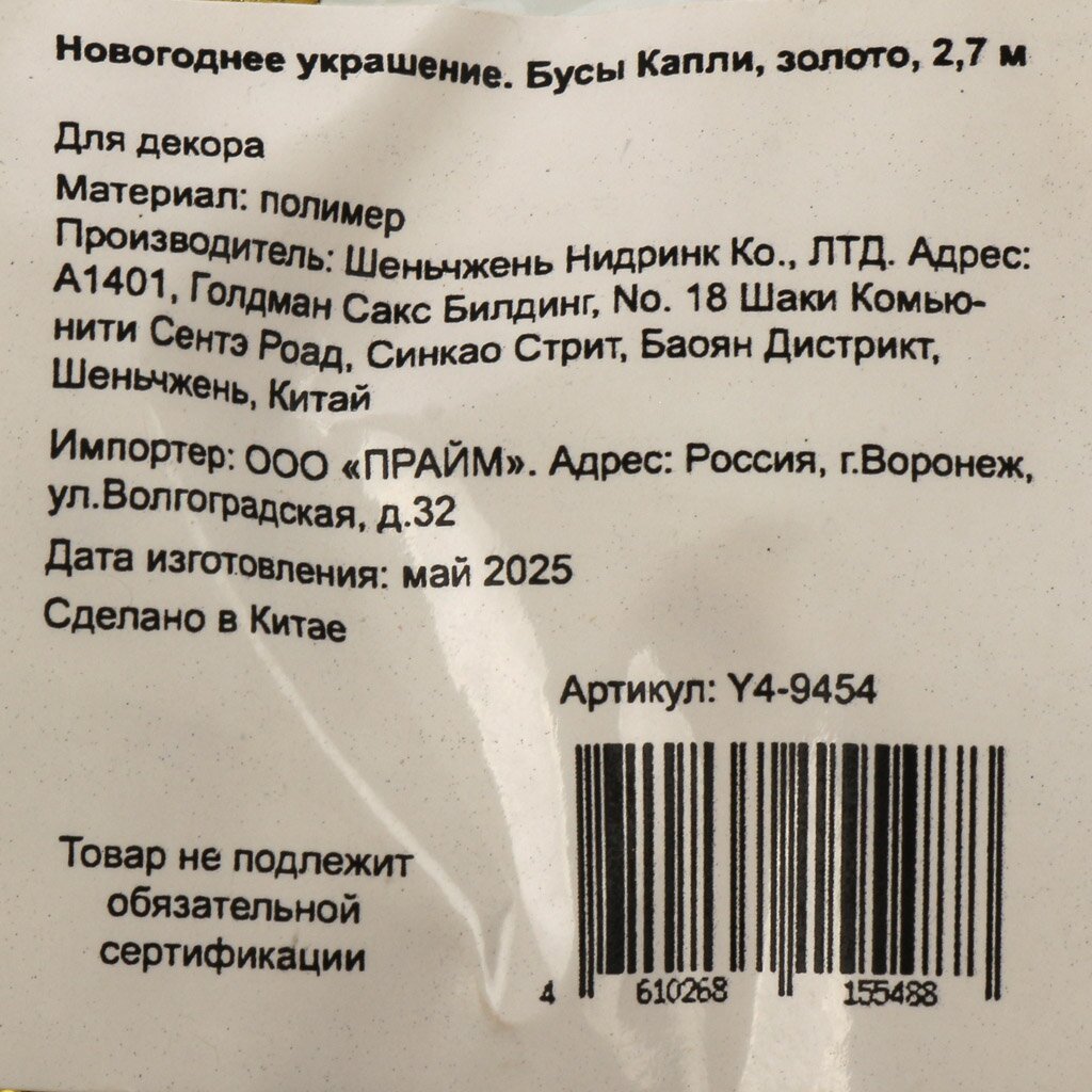 Закажите бусы Капли, золото, 2,7 м прямо сейчас — получите быструю доставку и гарантию качества от проверенного продавца. Украсьте свой праздник выгодно!
