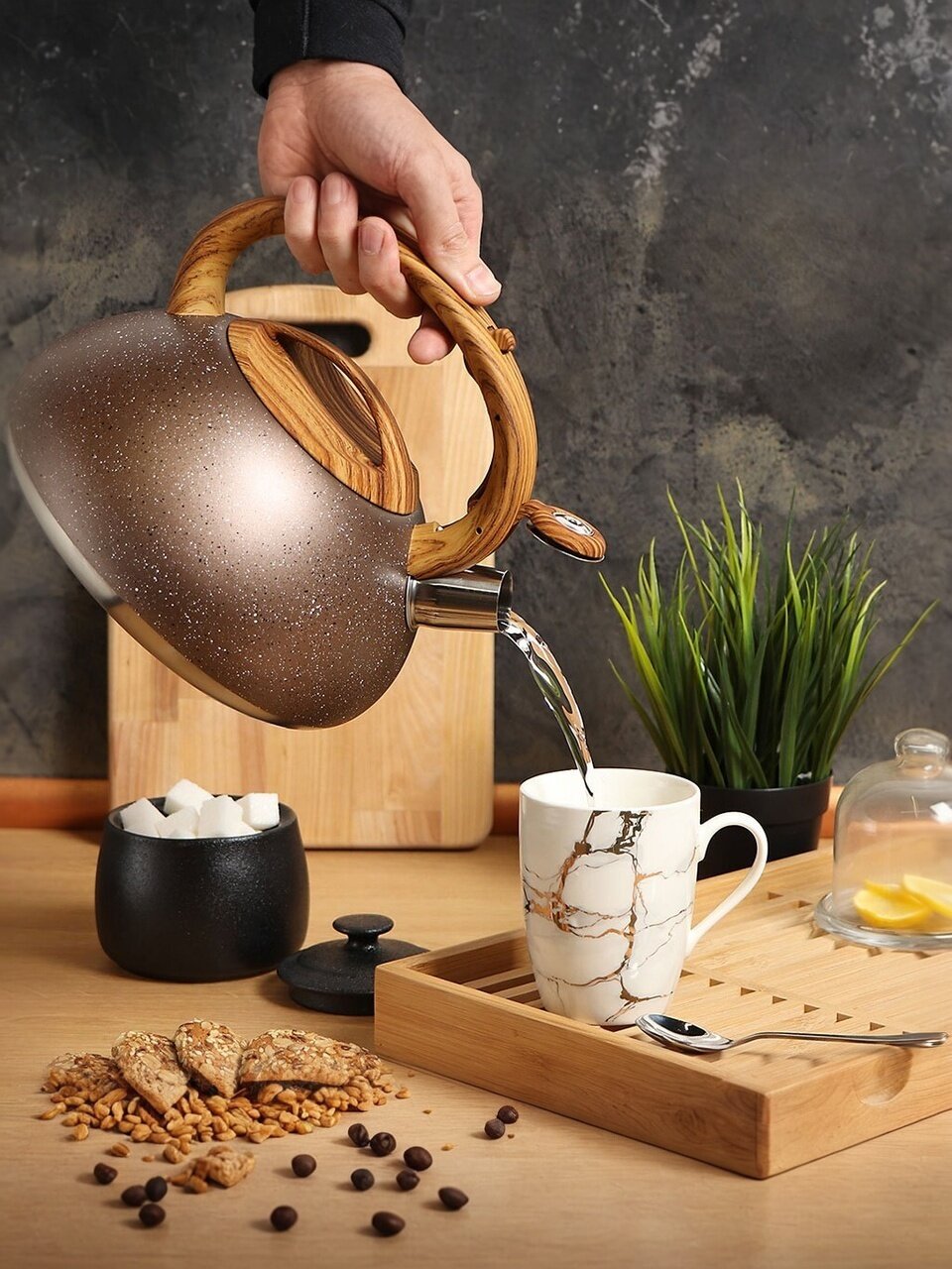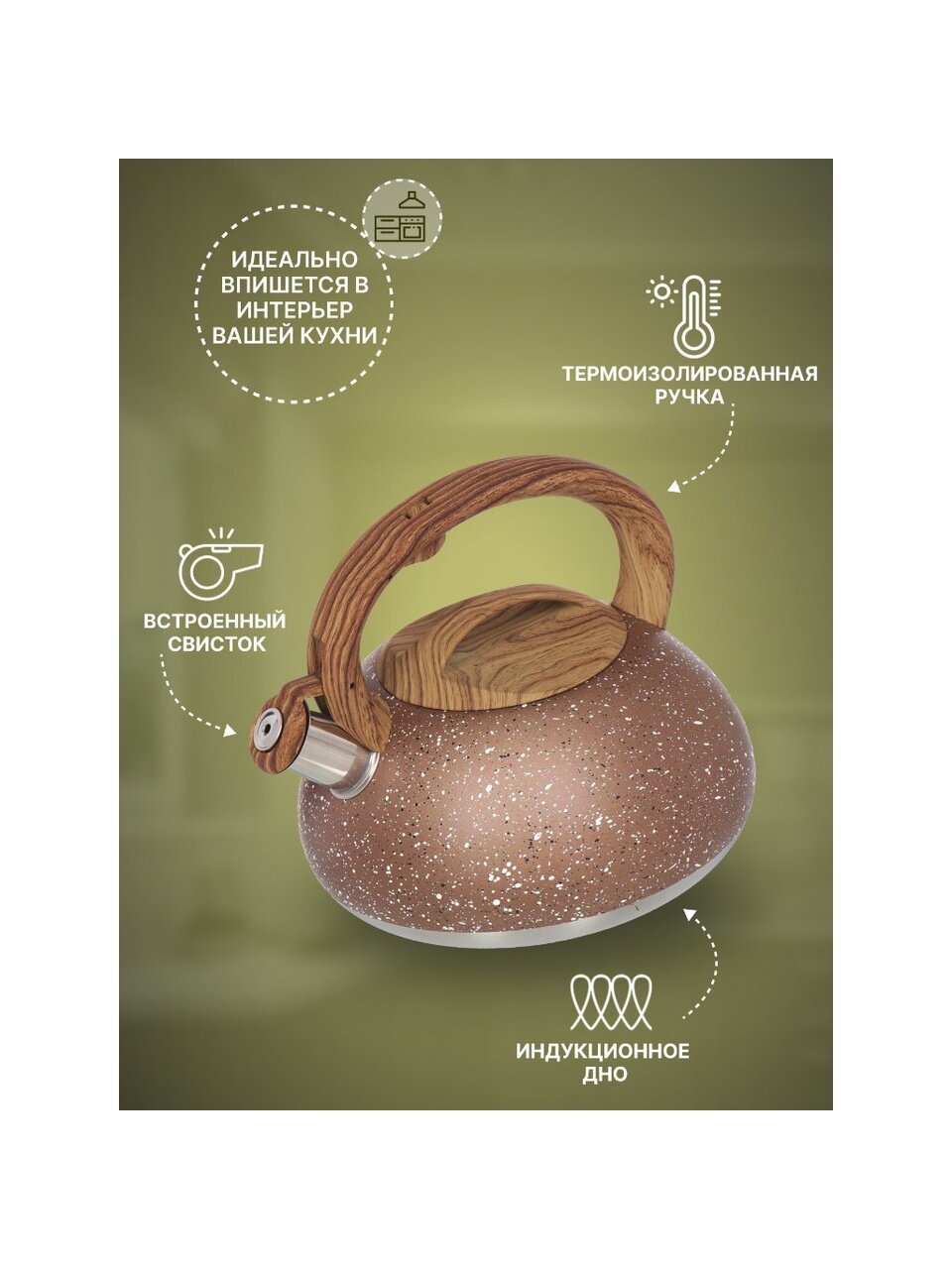 Вы можете приобрести «Чайник нержавеющая сталь, 3 л, со свистком, матовый, ручка бакелитовая, Daniks, коричневый мрамор, DSC-8800» и другие товары в нашем интернет-магазине в Таганроге по низким ценам и с бесплатным самовывозом.