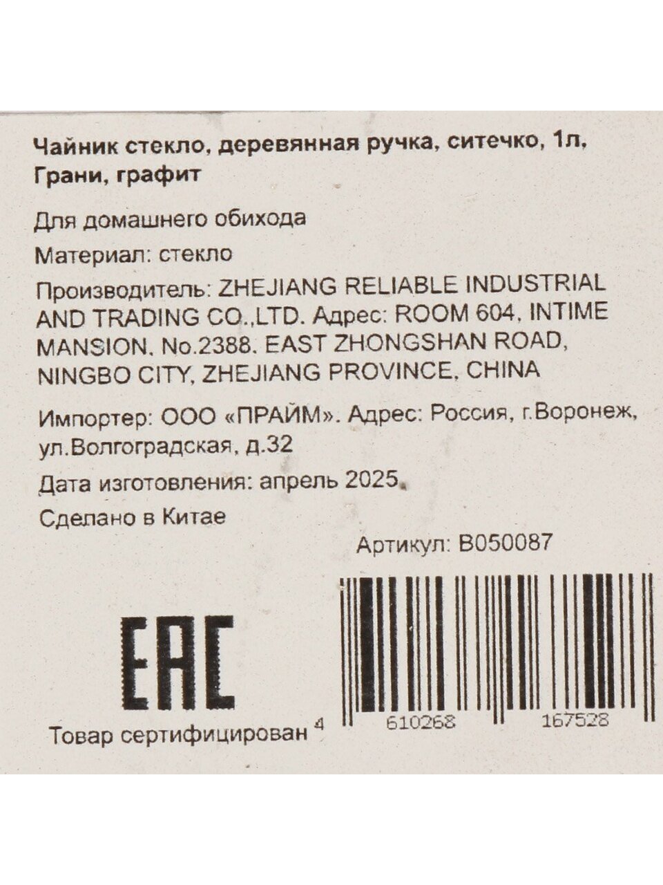 Вы можете приобрести «Чайник заварочный стекло, 1 л, с ситечком, деревянная ручка, Грани, B050087, графит» и другие товары в нашем интернет-магазине в Обнинске по низким ценам и с бесплатным самовывозом.
