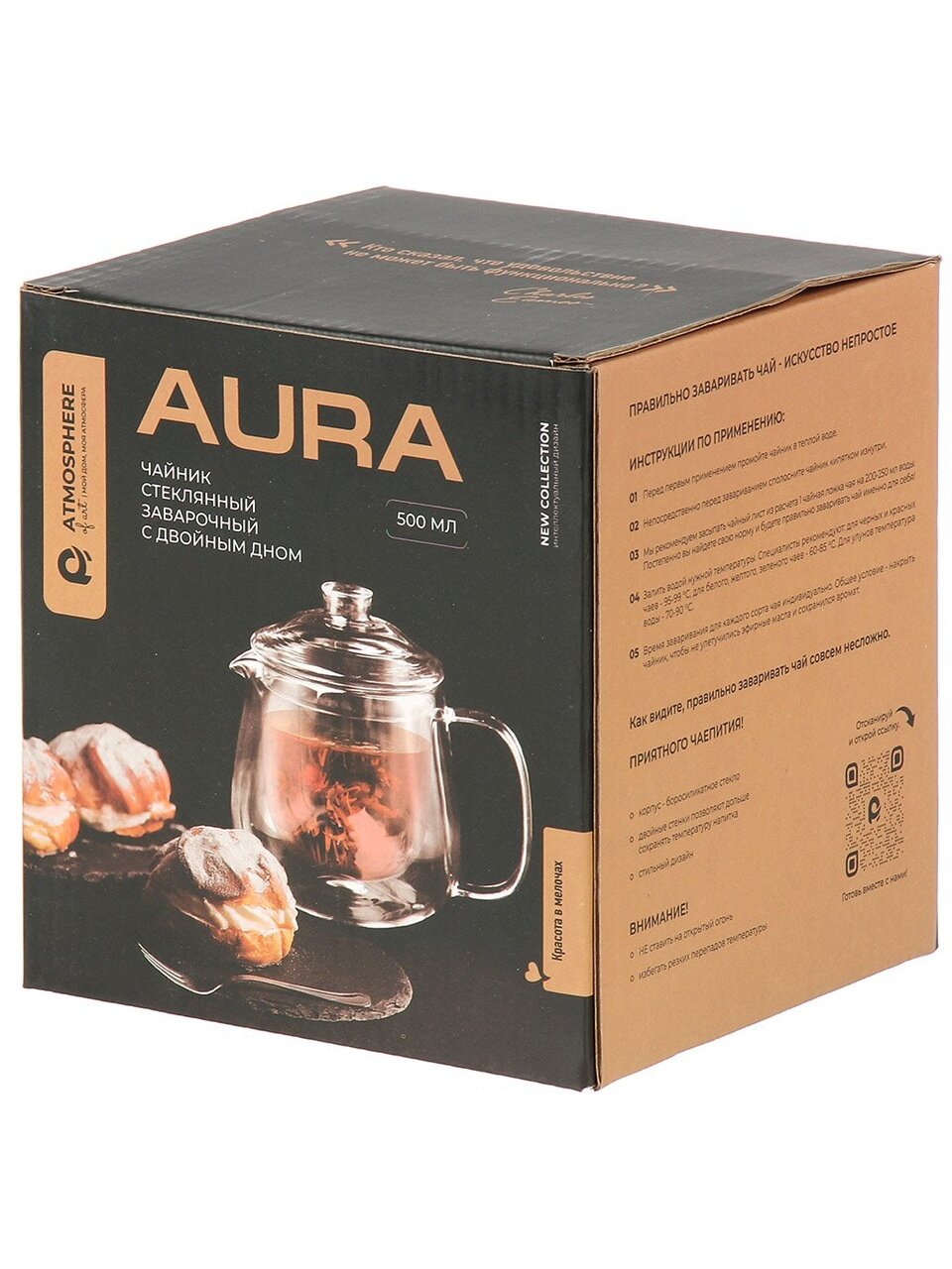 Коллекция Atmosphere Aura создана для тех, кто ценит лаконичность и функциональность в каждом предмете быта. Чайник легко мыть, он не требует особого ухода, подходит для ежедневного использования. Стекло сохраняет естественный вкус напитка, не искажая его, а отсутствие декора делает изделие универсальным и подходящим для любого случая.