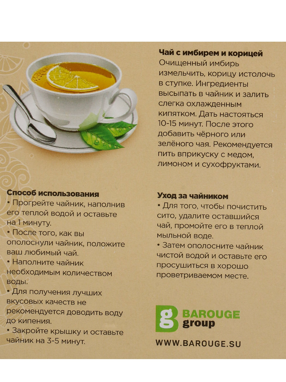 Идеальный вариант, чтобы купить недорого заварочный чайник для дома, дачи или в подарок. Оформите заказ — получите стильный аксессуар для чаепитий с гарантией качества Barouge.