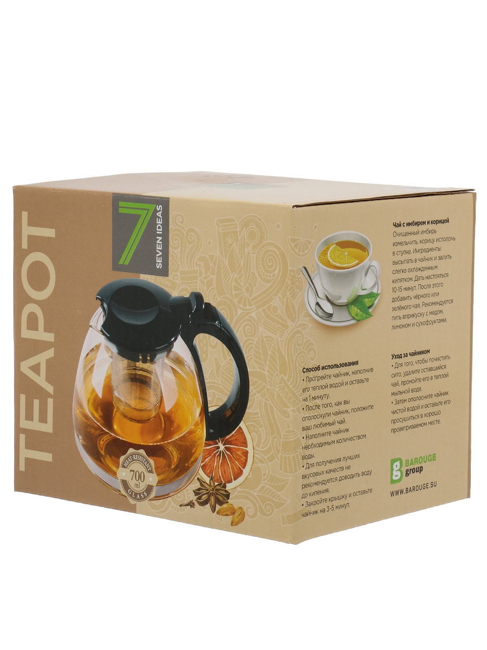 Заварочный чайник Barouge 0.7 л из закалённого стекла с удобным ситечком: стиль, чистый вкус чая, идеальный подарок и комфорт для дома или дачи.