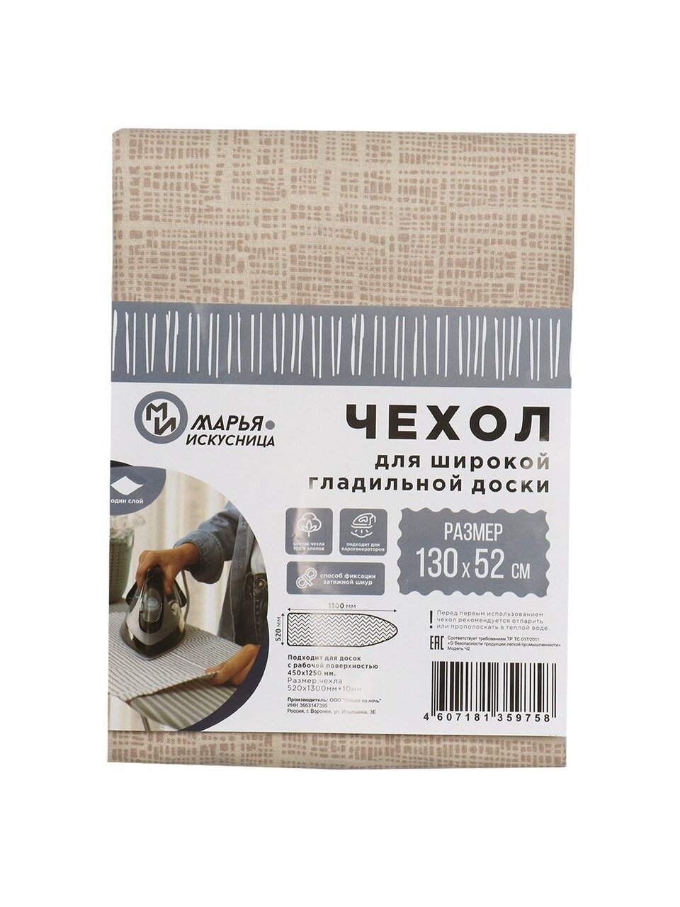 Представляем чехол для гладильной доски и парогенератора от бренда "Марья Искусница", который станет идеальным решением для удобства и стиля в вашем доме. Его размеры 130х52 см обеспечивают надежную фиксацию и комфортное использование.