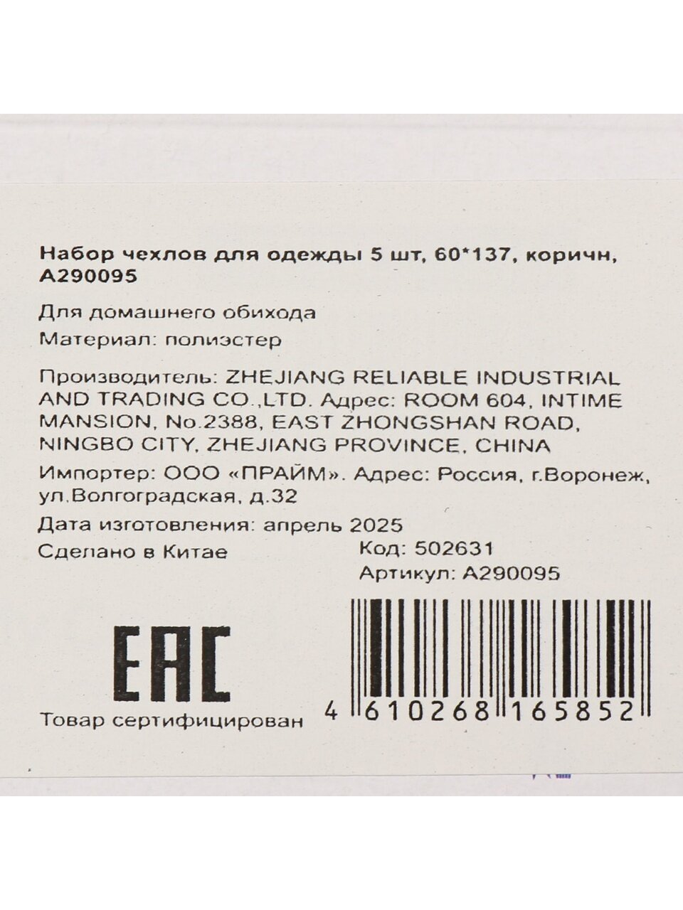 Вы можете приобрести «Набор чехлов для одежды 60х137 см, полиэстер, без кармана, 5 шт, коричневый, A290095» и другие товары в нашем интернет-магазине в Санкт-Петербургe по низким ценам и с бесплатным самовывозом.