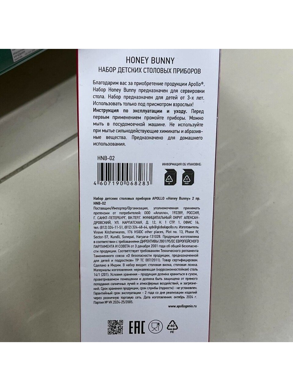Набор ''Honey Bunny'' предназначен для сервировки стола. Набор предназначен для детей от трех лет. Использовать только под присмотром взрослых! Материалы изготовления: нержавеющая (коррозионностойкая) сталь 14/1