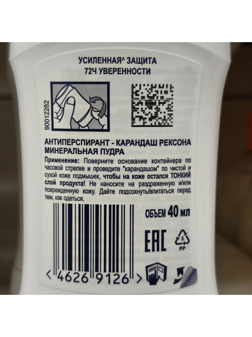 Для надежной защиты от пота и запаха попробуйте новинку от Rexona – антиперспирант-карандаш Минеральная пудра. Его улучшенная формула мгновенно высыхает за 3 секунды без ощущения липкости на коже. Антиперспирант обладает усиленной эффективностью. Он создает дышащий микробарьер для непревзойденной защиты от пота и запаха на 72 часа.