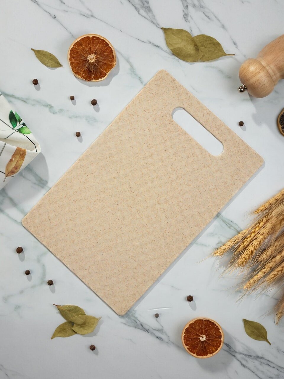 - Доска разделочная имеет удобную ручку для переноски и подвешивания, что позволяет сохранять ее в чистоте и порядке.