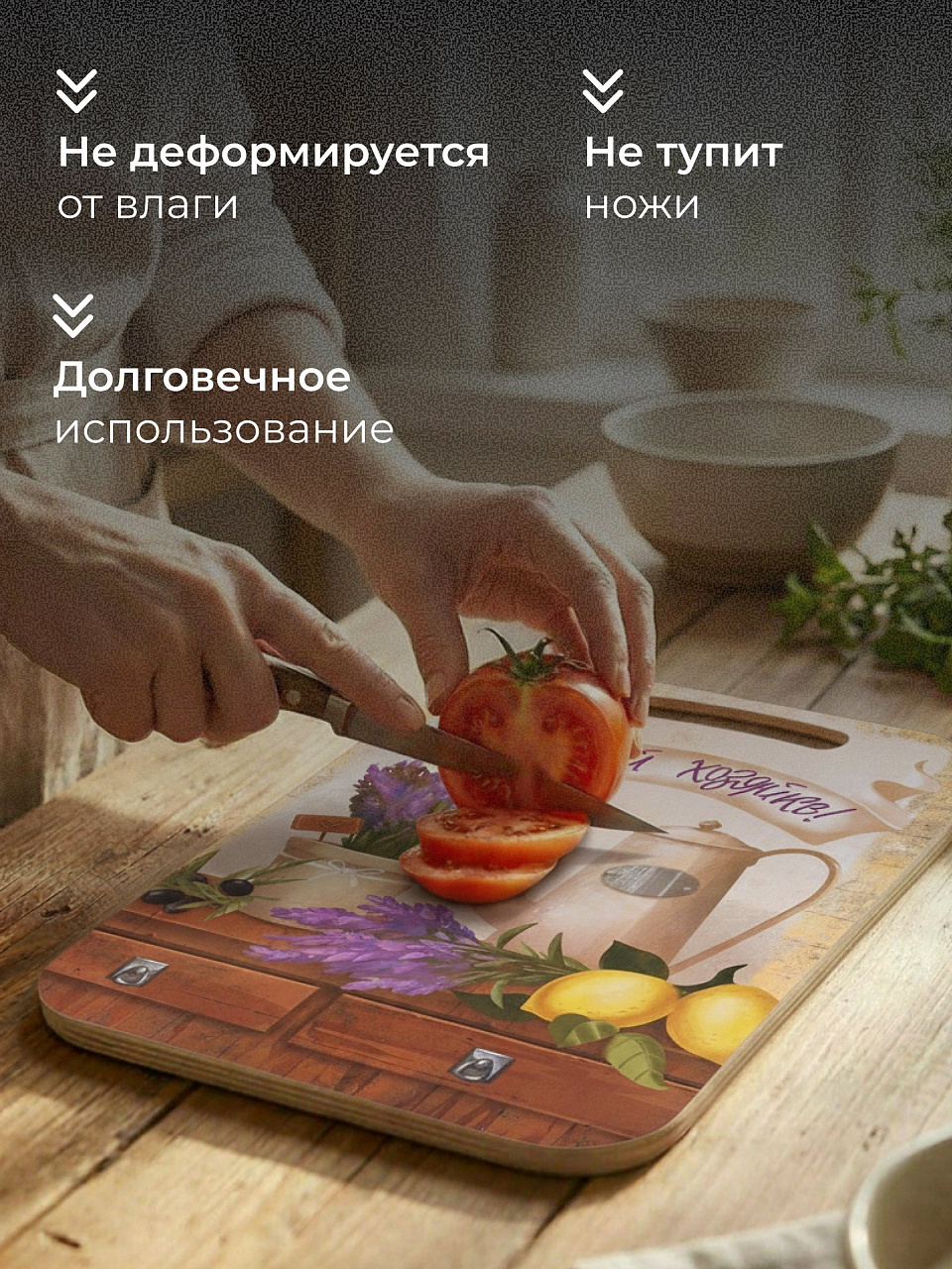 Деревянная разделочная доска - универсальный помощник на кухне, который подставит вам плечо в нужный момент. Нарезка фруктов, шинкование овощей, разделка рыбы и птицы на разделочной доске легко выполняются любые кулинарные задачи. Уход за разделочной доской несложен: чтобы она не впитала ненужный запах, после использования доску нужно промыть горячей водой, а затем очень тщательно протереть бумажным или хлопчатобумажным полотенцем.