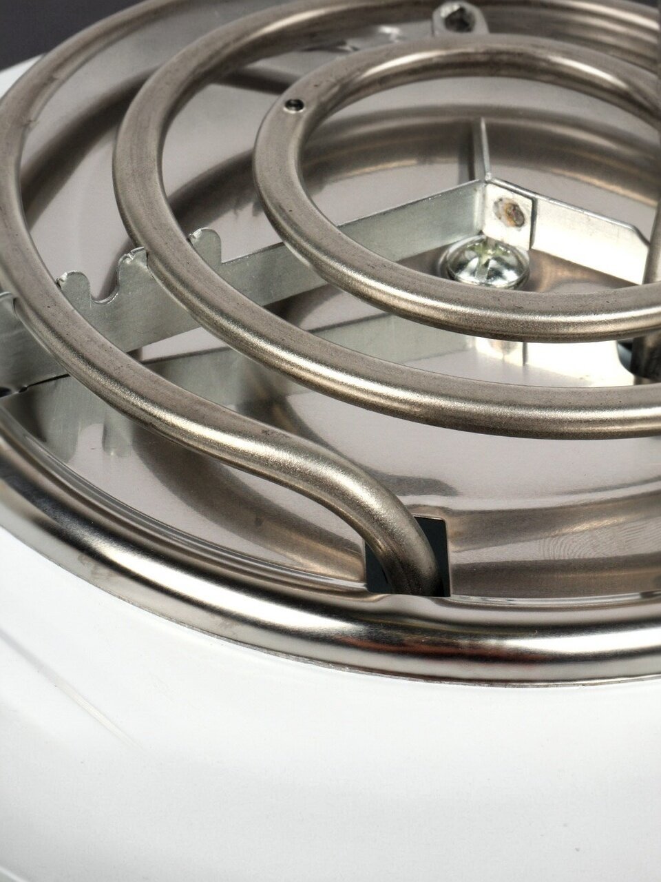 - быстрый нагрев — мощность 1000 Вт и спиральная конфорка обеспечивают эффективное приготовление пищи;