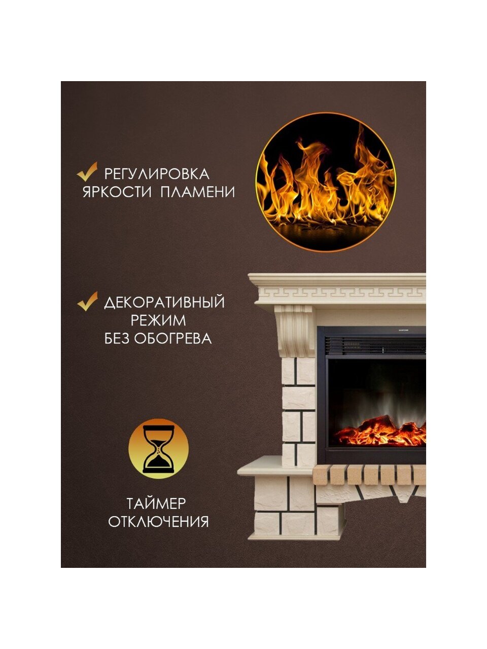 Часто спрашивают: «Какой электрокамин лучше выбрать для дома?» или «Чем отличается этот камин от других?» — RealFlame Stone New 26 сочетает в себе эксклюзивный дизайн, прочный комбинированный корпус и расширенный функционал: термостат, таймер, два режима обогрева, пульт ДУ. В отличие от стандартных моделей, здесь реализован эффект живого огня с дополнительным звуком, что создает атмосферу уюта без необходимости дымохода или монтажа.