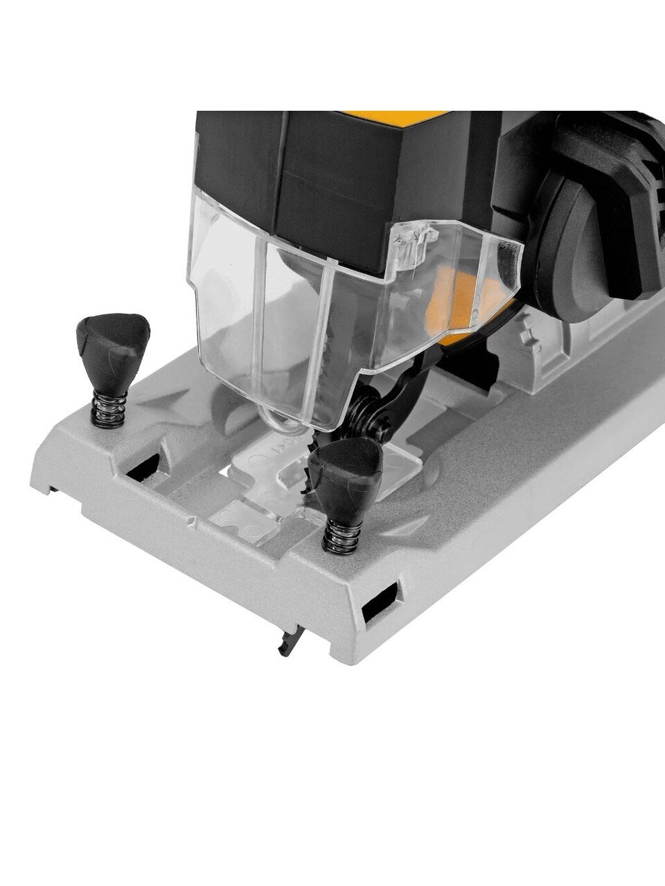 Лобзик Denzel CJ-80 оснащен маятниковым ходом, что значительно ускоряет процесс распила и улучшает качество реза. Глубина пропила дерева достигает 80 мм, что позволяет работать с толстыми заготовками, а глубина пропила стали составляет 5 мм, что идеально подходит для более тонких металлических работ. Также предусмотрена возможность резки алюминия глубиной до 12 мм, что расширяет функционал инструмента.