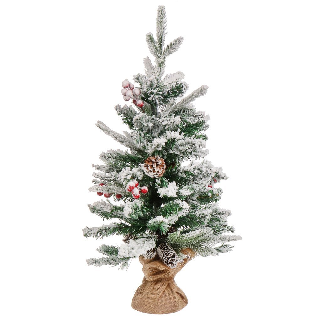 Настольная новогодняя елка 65 см с заснеженными ветками и ягодами — стильный декор для дома или подарка, который не осыпается и не требует ухода.