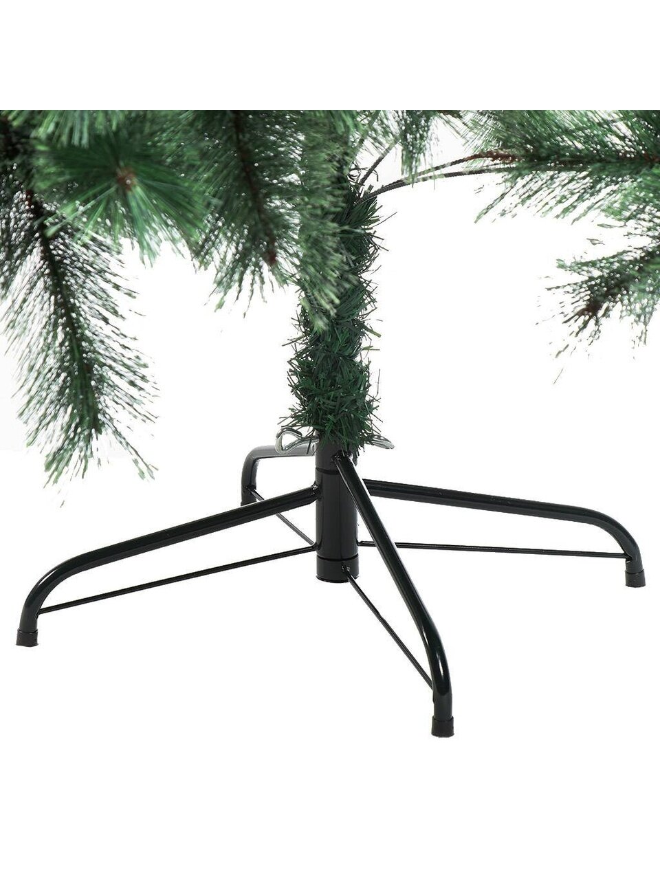 Хвоя выполнена из прочной лески, визуально имитирующей натуральную сосну. Подставка изготовлена из металла, что гарантирует устойчивость конструкции.