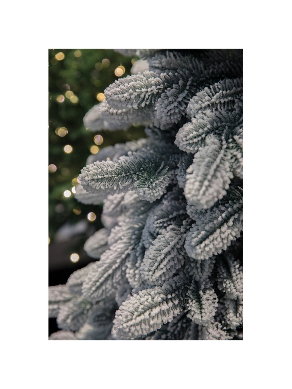 - Реалистичная хвоя — литая, густая, с эффектом настоящего снега, смотрится как живая скандинавская ель.
