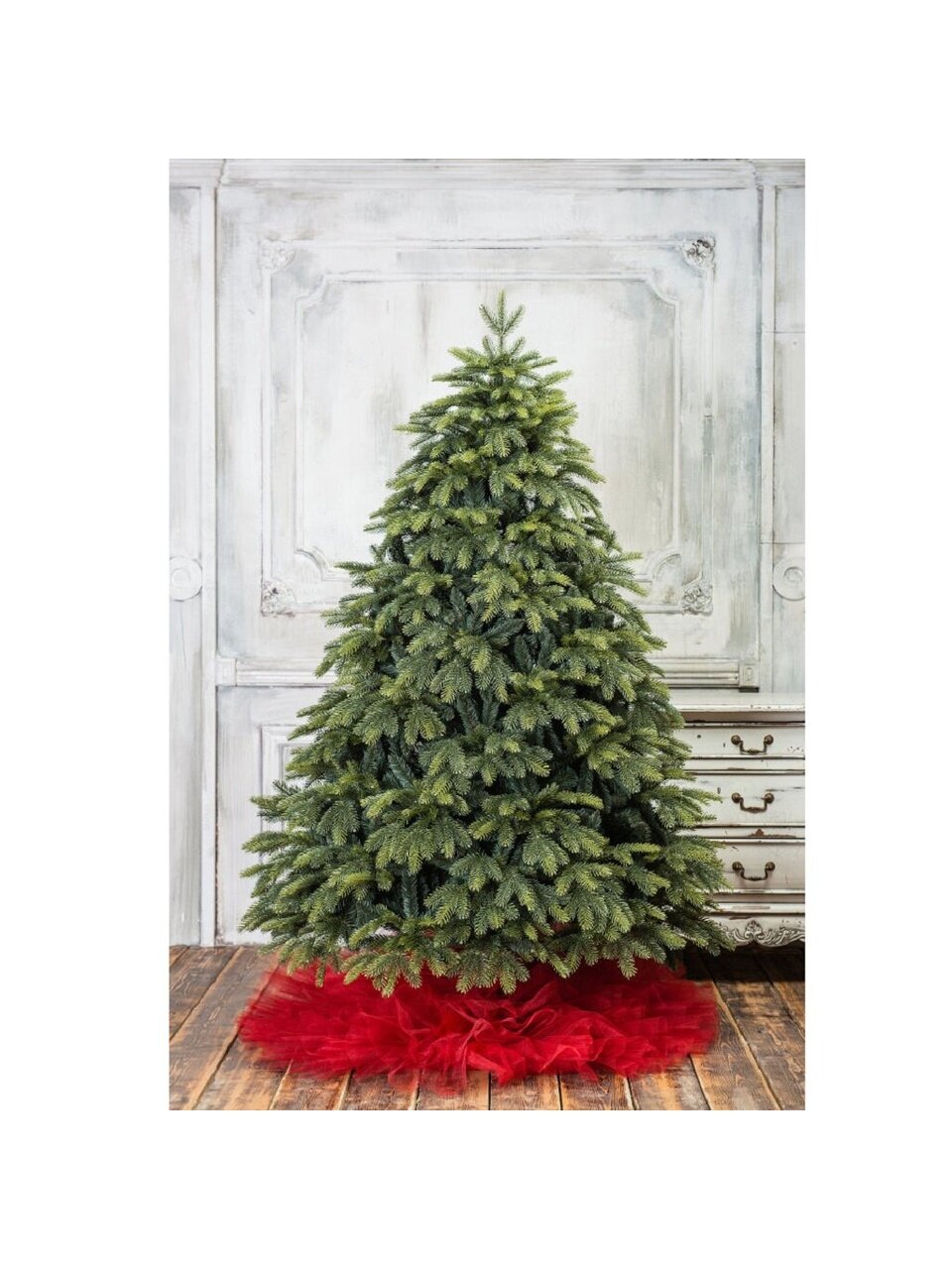 - Максимальная натуральность — литая хвоя с ПВХ-пленкой, визуально не отличима от живой ели