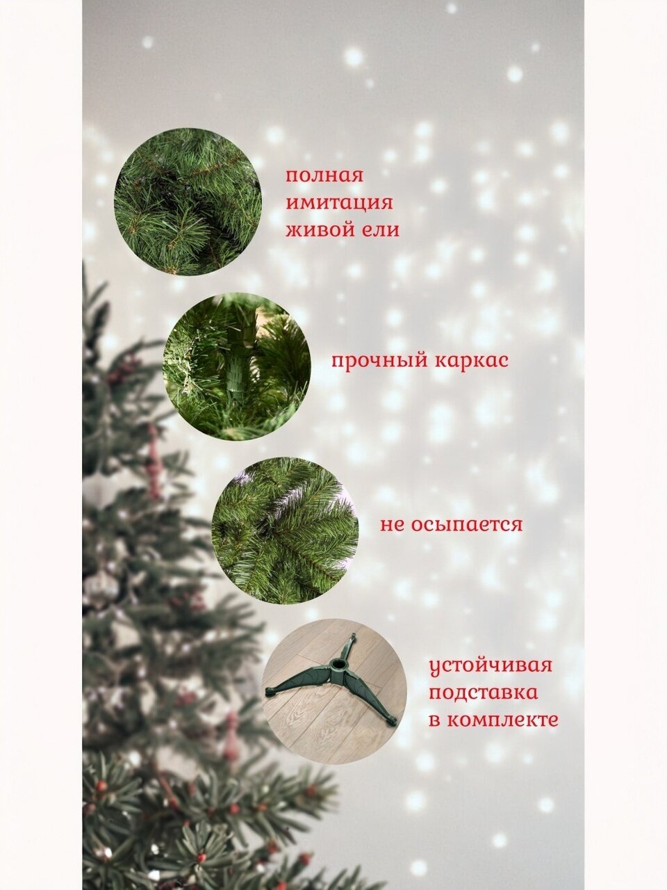 Елка новогодняя напольная 220 см Леа — эффектная ель с густой хвоей из ПВХ: создайте атмосферу настоящего праздника дома или на даче без лишних хлопот!
