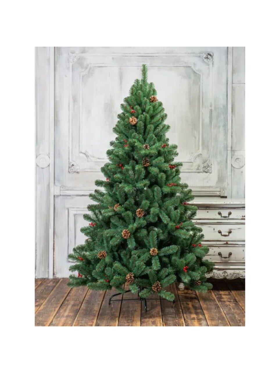 Елка напольная «Новогодняя сказка» 210 см — реалистичная хвоя ПВХ, 1002 ветки, декор шишками и ягодами. Создайте атмосферу праздника дома или на даче.