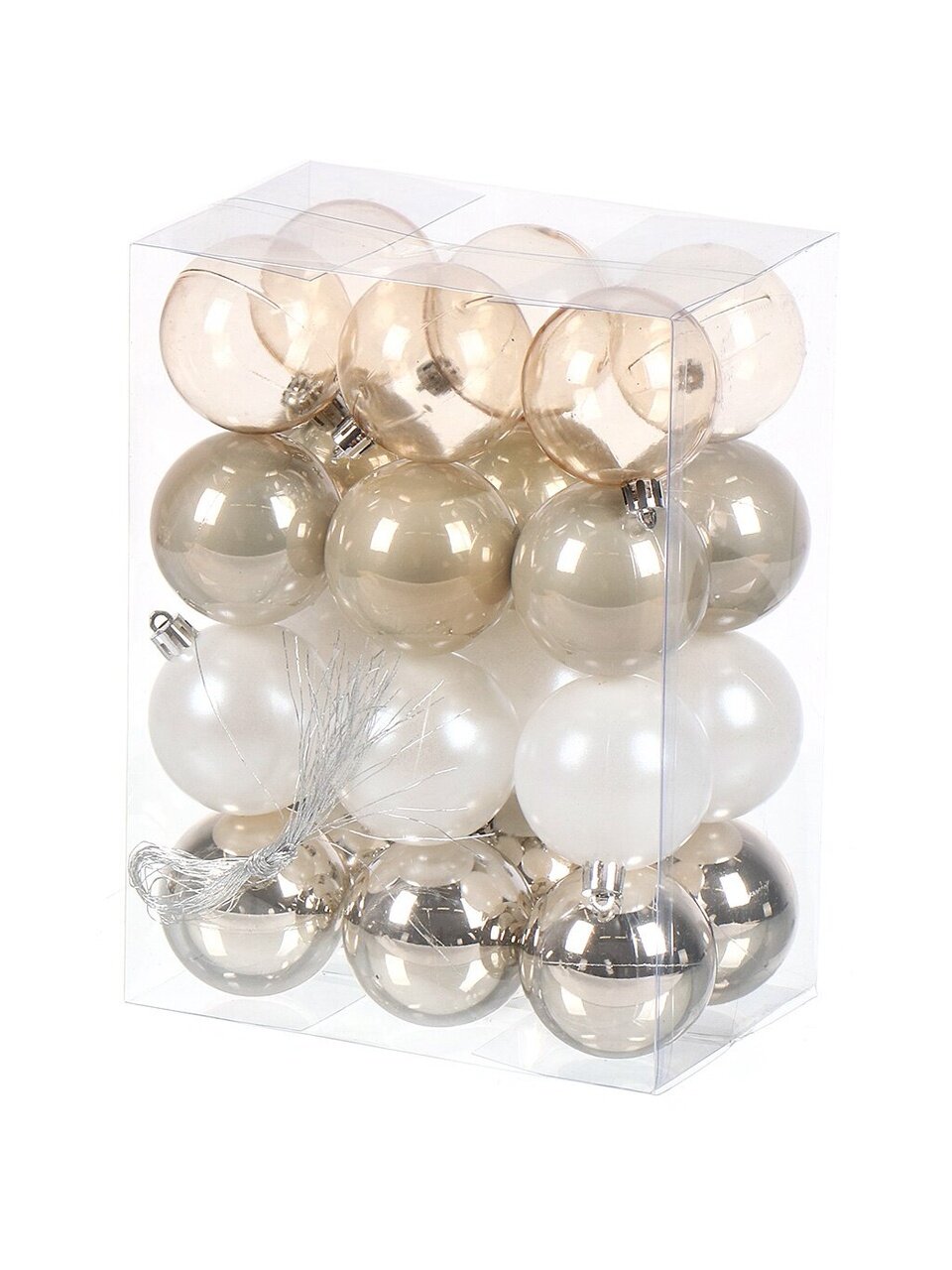 В комплекте 24 разноцветных шара диаметром 6 см, все с удобным креплением на подвеске.