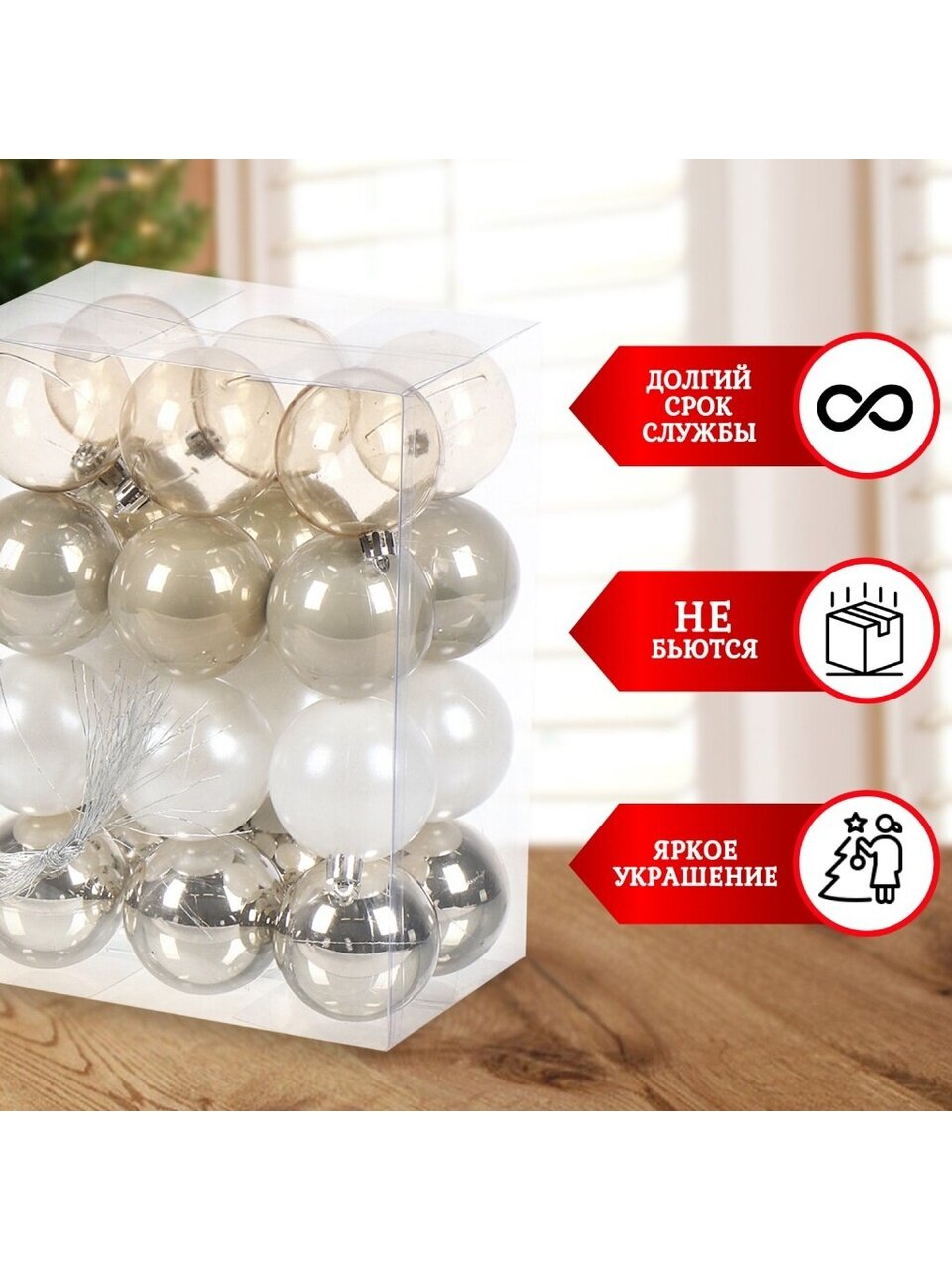 Набор елочных украшений 24 шт, микс, 6 см — яркое решение для стильного декора: небьющиеся шары, идеальный размер, разноцветный дизайн для дома и подарка.