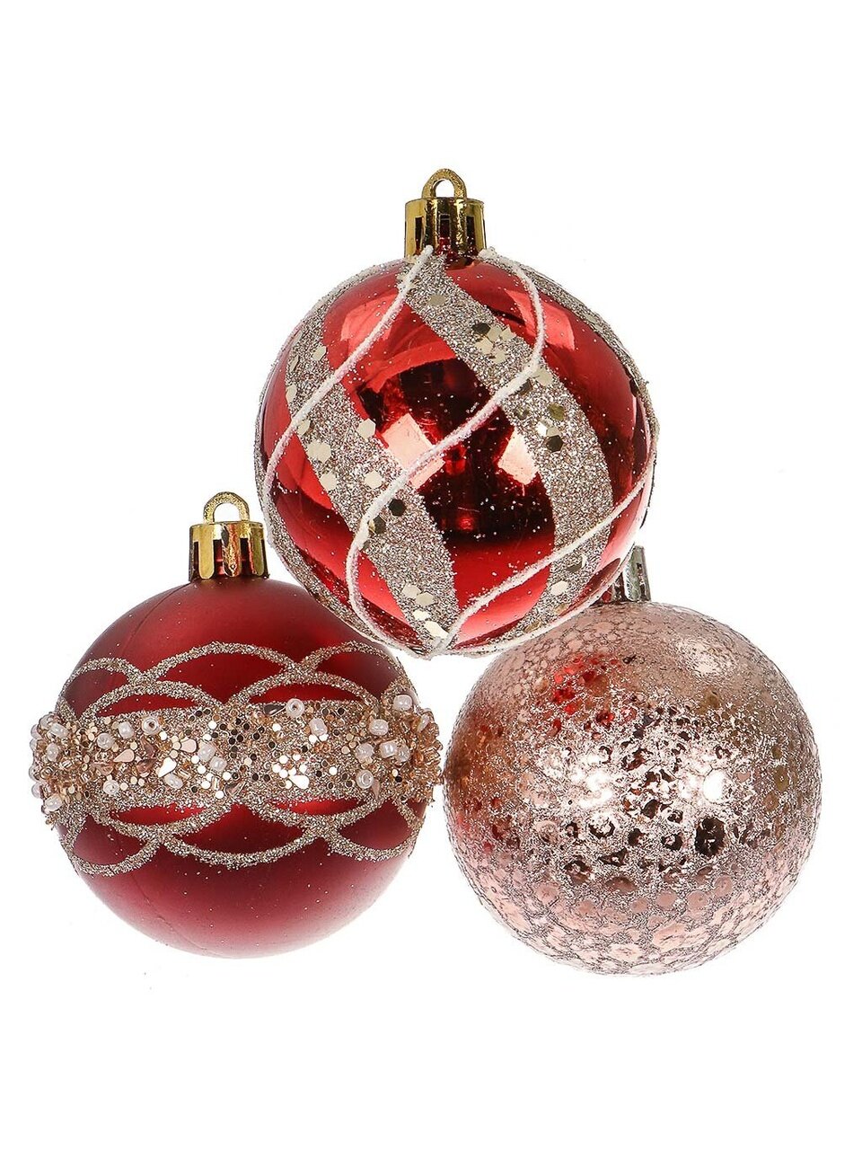 - Пластик с блестящим покрытием, диаметр каждого шара 6 см — оптимален для компактных и больших деревьев
