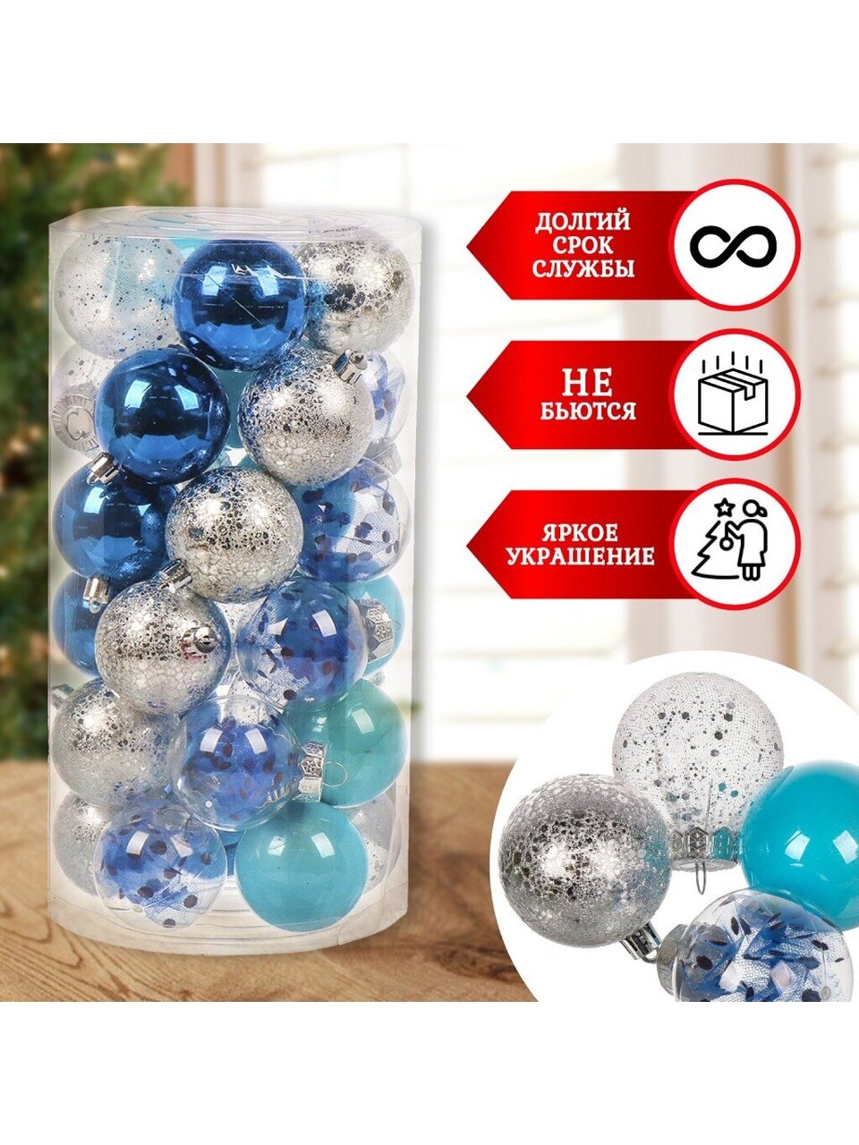 Набор елочных украшений 30 шт, микс, 6 см — стильный декор для дома и дачи, который не бьётся, подходит для подарка и легко крепится на любую елку.