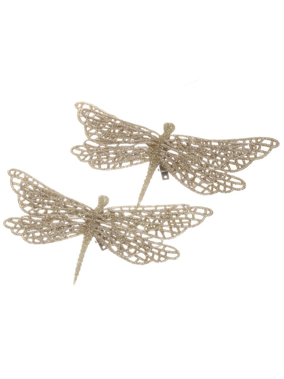 Набор елочных украшений Стрекоза, 2 шт, золото — стильный декор для новогодней елки, который не бьётся, легко крепится и подходит для дома, дачи и подарка.