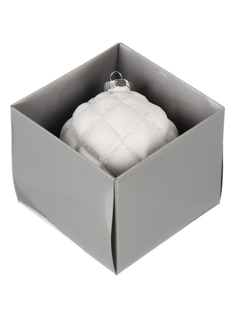 - Эксклюзивный дизайн — белый стеклянный шар с эффектом облака и блестящим покрытием создает атмосферу уюта и зимней сказки