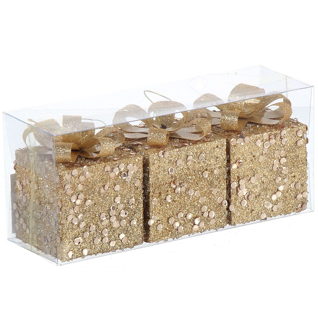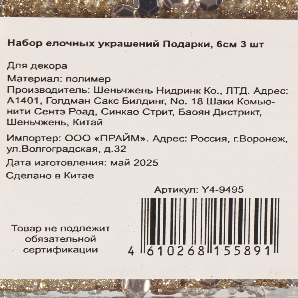 Набор елочных украшений «Подарки» (золото, 6 см, 3 шт, Y4-9495) — стильное решение для эффектного и безопасного декора дома или дачи. Небьющиеся, подходят для семей с детьми.