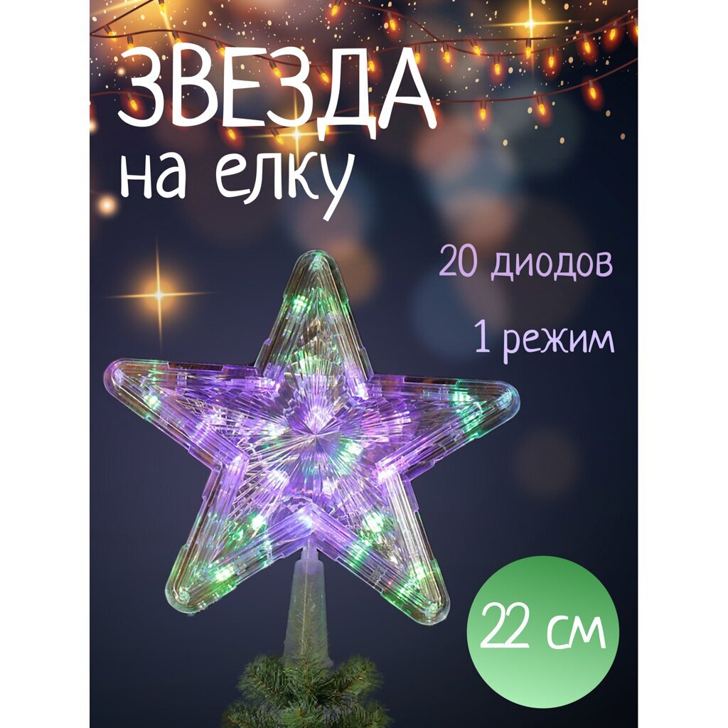 Гирлянда «Звезда» на верхушку ели 22 см — стильный LED-декор для дома: небьющийся полимер, мультиколор, экономия времени на украшение и безопасность в эксплуатации.