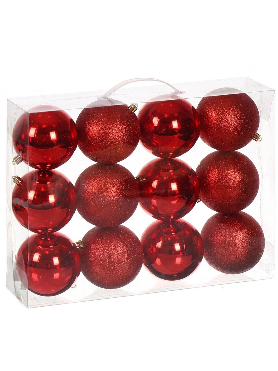 Елочные шары 12 шт, красные, 10 см — эффектное украшение для дома и улицы: не бьются, подходят для больших елей, выгодный набор для стильного Нового года.
