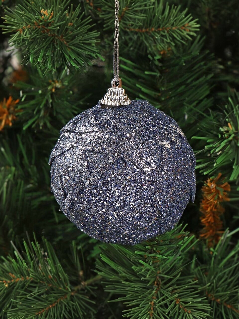 Шар диаметром 10 см подходит для стандартных и уличных елок, легко крепится на подвеске, не утяжеляет ветви.