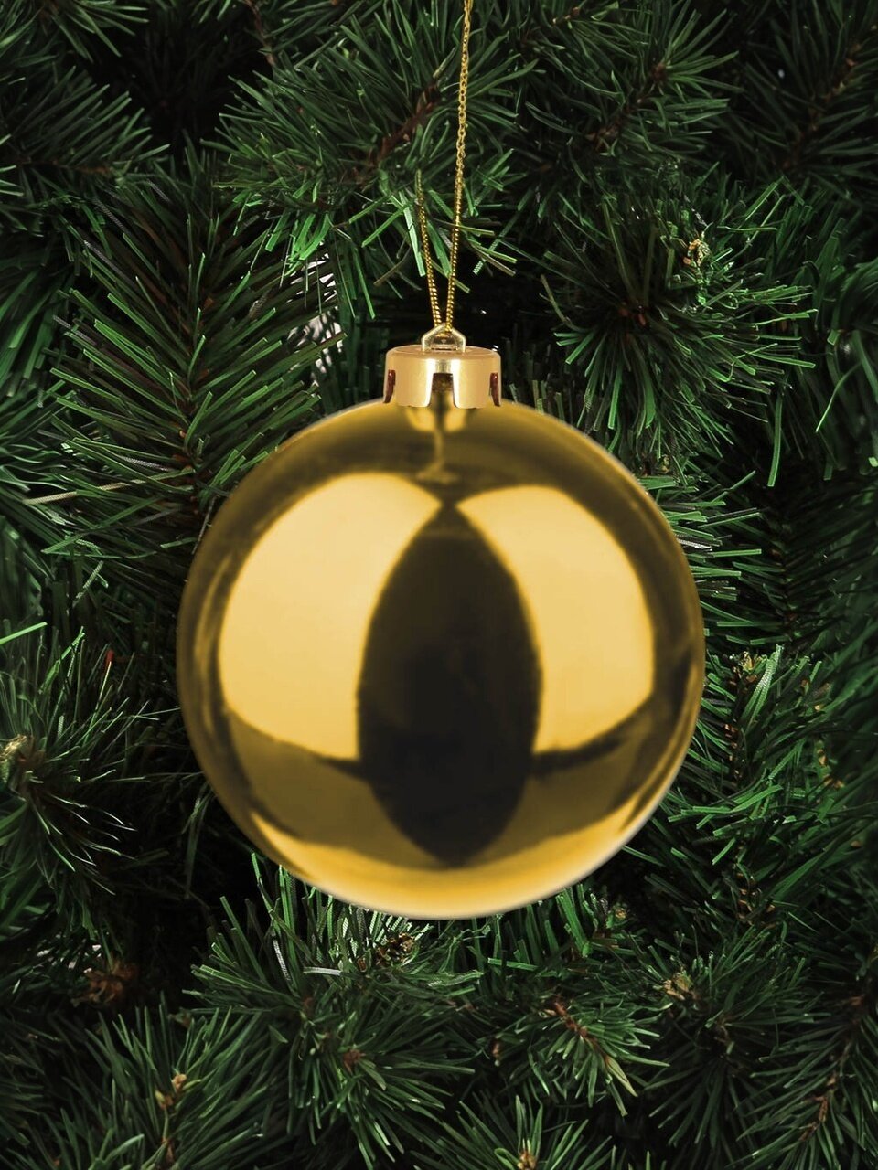 Большой золотой елочный шар 15 см SYB-04 — эффектный декор для улицы и дома: небьющийся, блестящий, долговечный, выгодно подчеркнёт стиль вашей новогодней ёлки.