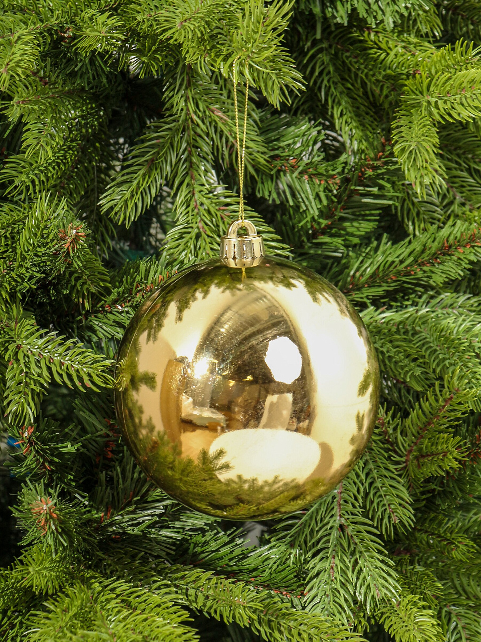 - Впечатляющий размер: диаметр 15 см, яркое блестящее покрытие, заметен даже на большой ёлке