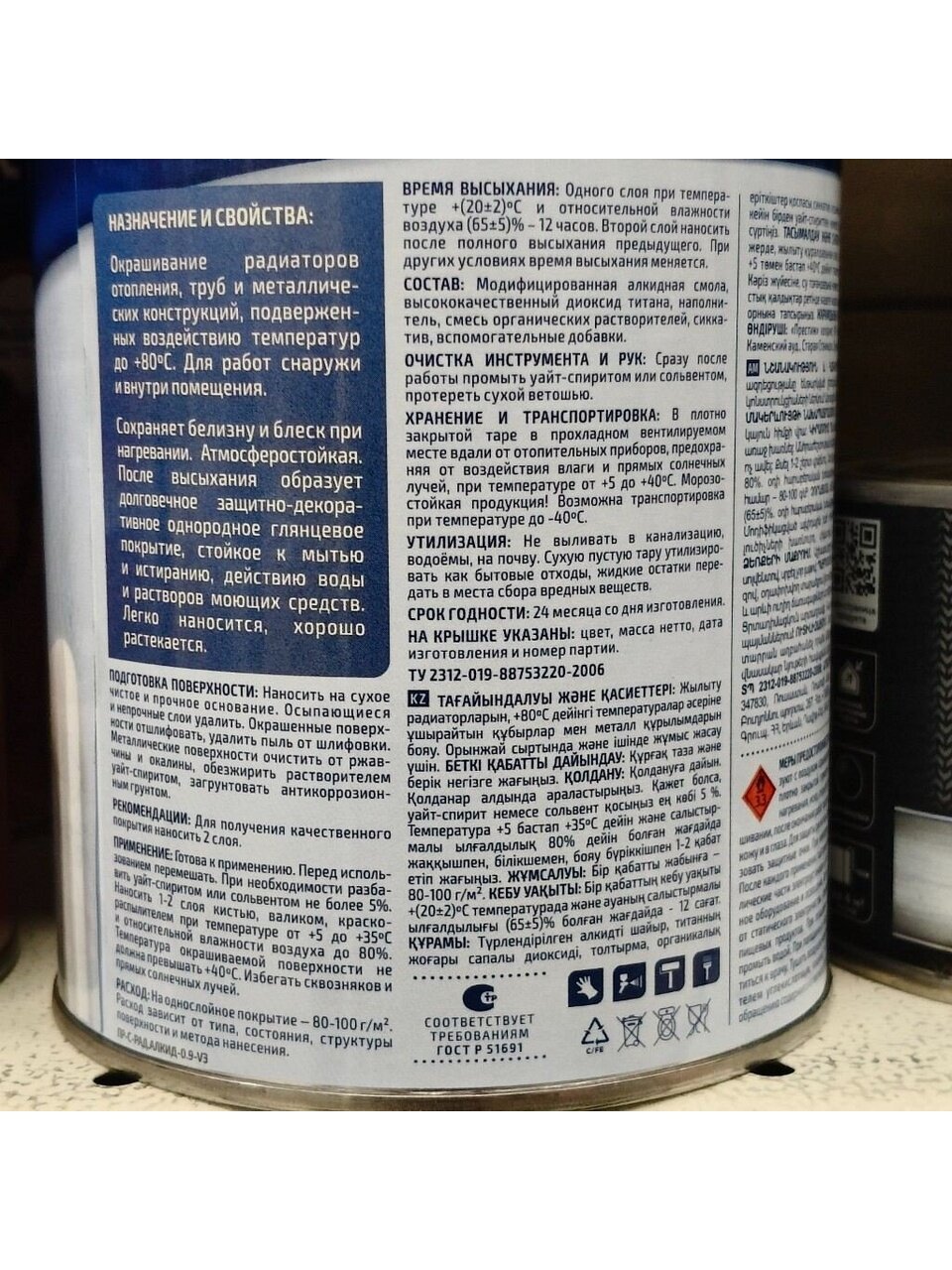 Покрытие быстро и надежно защищает радиаторы от воздействия высоких температур, предотвращает образование сколов и трещин. Алкидная основа обеспечивает отличную адгезию к металлу и дереву, а также минимизирует расход материала. Эмаль подходит для внутренних работ, не требует сложной подготовки поверхности и может быть разбавлена стандартными растворителями — сольвентом или уайт-спиритом.