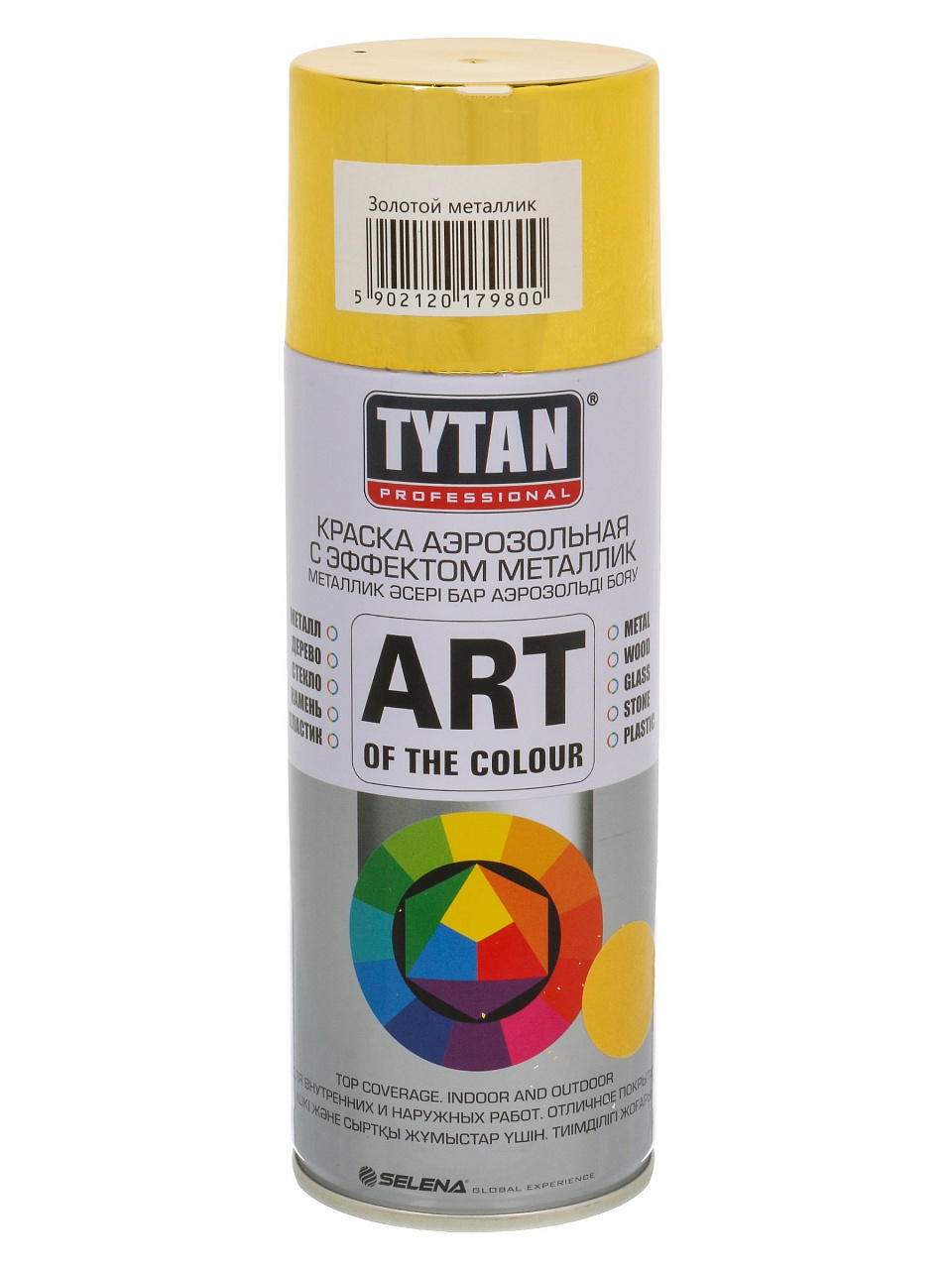 Эмаль аэрозольная Tytan Professional: универсальная, быстросохнущая акриловая краска металлик «золото» — идеальный выбор для стильного декора и защиты поверхностей за 15 минут.