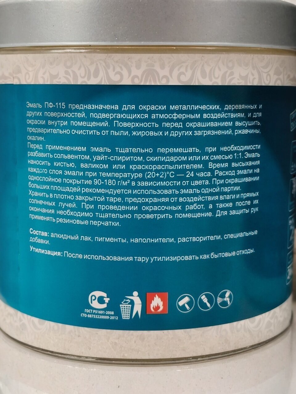 Состав: алкидный лак, пигменты, наполнители, растворители, специальные добавки.