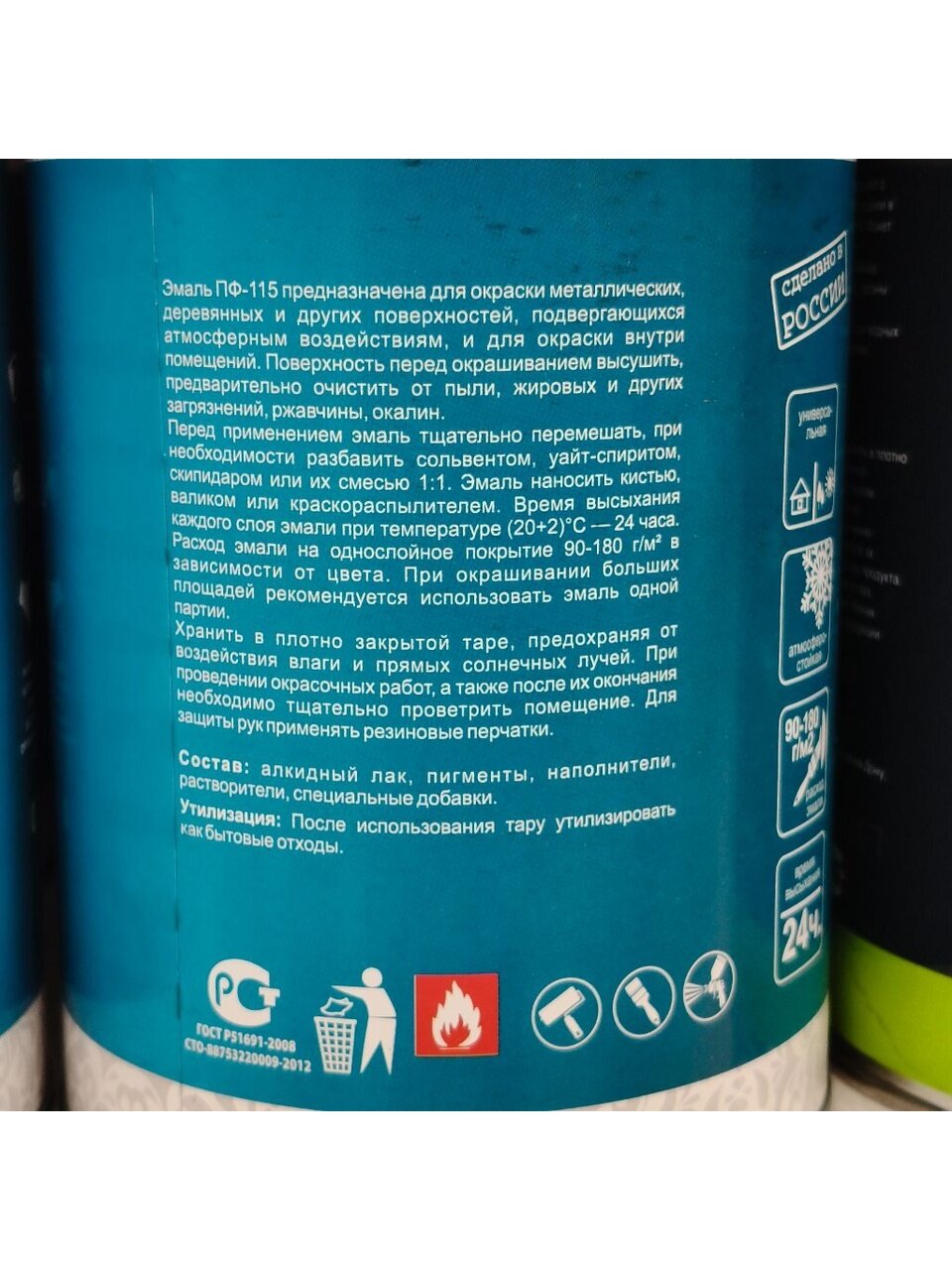 Эмаль ПФ-115 предназначена для окраски металлических, деревянных и других поверхностей, подвергающихся атмосферным воздействиям, и для окраски внутри помещений. Поверхность перед окрашиванием высушить, предварительно очистить от пыли, жировых и других загрязнений, ржавчины окалин.